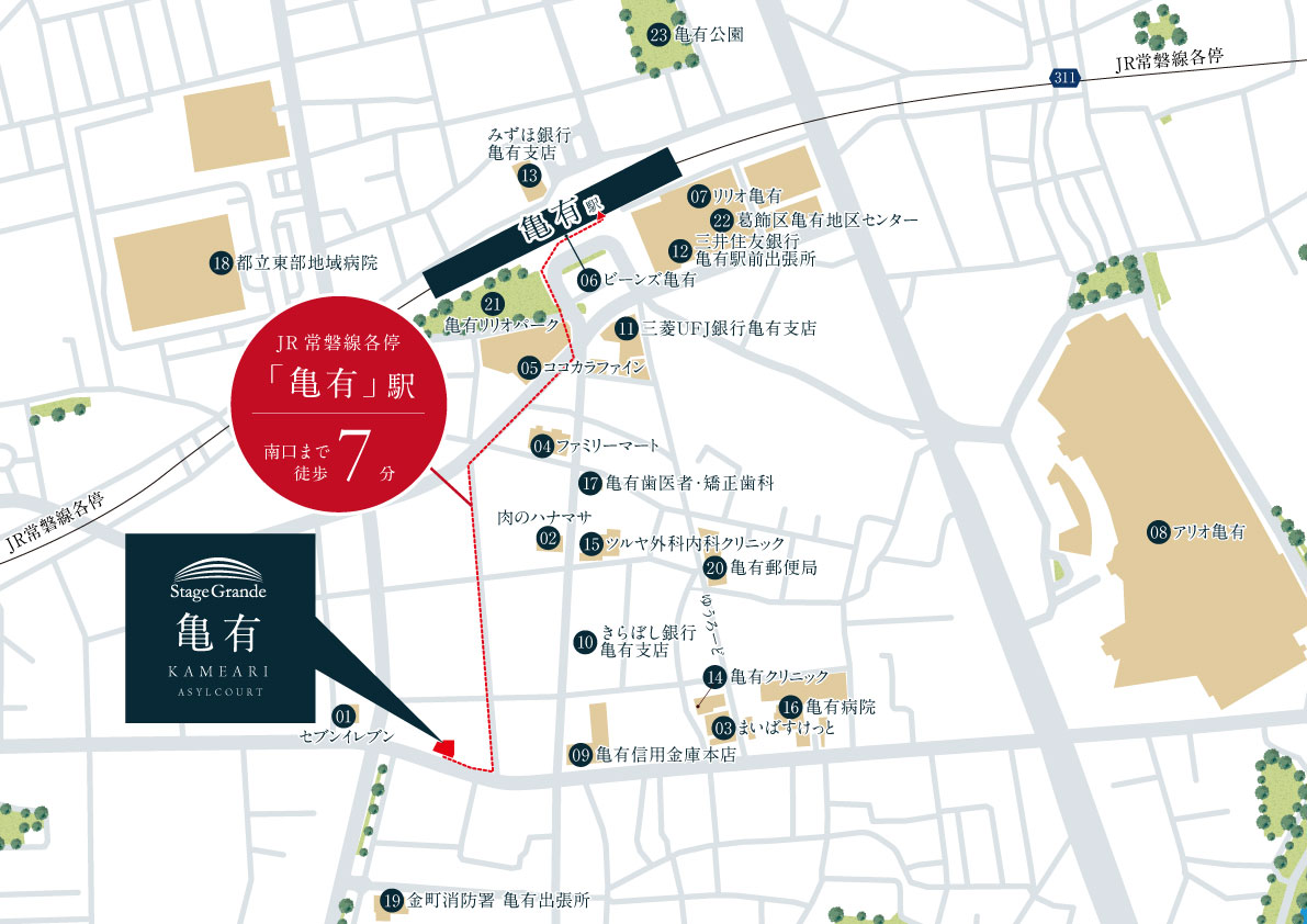| 11三菱UFJ銀行 亀有支店 | 徒歩 6分/約450m |